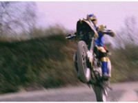 Crimson lands, then turns around and rides back the way he came, Navy drives right at the Winds, then pops a wheelie, Crimson doing the same. |