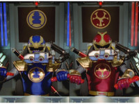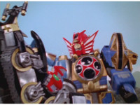 Crimson nod-talks, as does Navy who begins to work the controls, as their Zords then begin to roll forth, and in a dark swirling tunnel, Insectizord & Beetlezord come together to form the Thunder Megazord (no, not THAT one), before the two Thunders nod-talk in unison. |