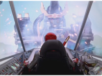 Yellow is jolted in his cockpit, then looks forth and grasps head. |