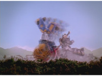 Recycled, per source; sped-up; cuts follow-up Megazord formed shot. |