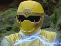 Yellow turns and Navy talks while gesturing hand, then unleashes electricity from his helmet, ensnaring Yellow, who struggles as he's lifted up off the ground and swung around above Navy until he finally releases him. |