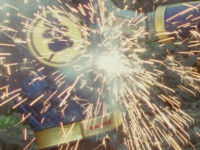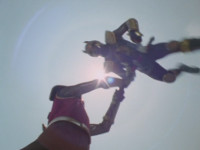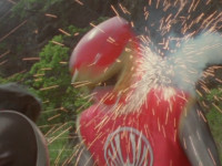 Explosions erupt behind the two Thunders, sparkily sending them into the air, before they roll to a weary recovery. |