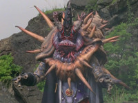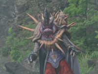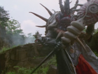 The Kelzak finishes off one last fellow Kelzak, while Crimson continues to sparkily slash Navy, before he blocks and holds his staff. |