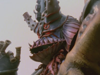 The Kelzak falls into the steam, his face suddenly gaining a green glaze, before getting up, whipping his arms about angrily, Supertoxipod reacts, then the Kelzak hops into battle, sparkily slashing all of his fellow Kelzaks. |