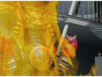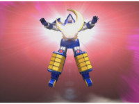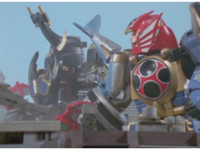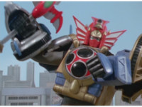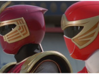 Crimson readies his Power Disc, then he and Red insert their Power Discs into the slots and turn the levers, causing Power Spheres 7 & 8 to pop out of each Megazord's chest, hatching in an energy tunnel into parts that connect into Minizord, who floats up in the air. |
