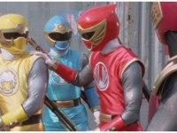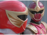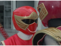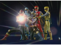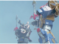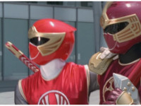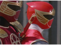 Blue reacts, as does Red, Crimson talking to him, the Winds react, Red then raising a fist. Storm Striker & Thunder Blaster are combined to create the Thunderstorm Cannon, braced by all five Rangers. |