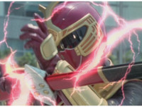 In a split-screen, Storm & Thunder Megazords hatch their 01 Power Spheres into their Serpent Swords. |