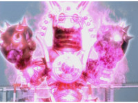 Both Winds & Thunders airing their Storm Striker & Thunder Blaster at the same time, the two balls of energy combining into one. |