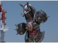 Red & Crimson are exploded into the air, then land roughly, Bopp-a-roo taunting them, Crimson gets up smoking, as does Red, who pulls out his Hawk Blaster and blasts the monster, bursting him. Bopp-a-roo's dial changes to electricity, he crackles and is prepared to strike. |