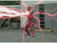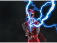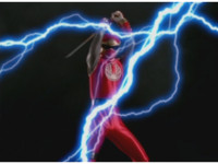 Crimson charges up his staff with electricity, then slashes Bopp-a-roo twice, before turning around and posing as he crackles and spark bursts. Crimson turns back around to face him as Red joins his side, Bopp-a-roo getting back up, talking, then fleeing. |