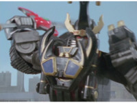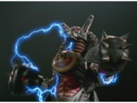 Thunder Megazord finishes forming, then punches its left fist forth and begins to charge it up. |