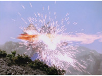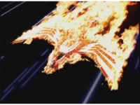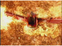 Zoom in on Red, gesturing his hand. Hawkzord suddenly ignites into flames. |