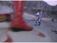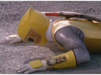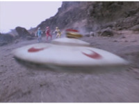Retinted from dusk-tint in source; cuts follow-ups of Rangers vs a tank, then a lengthy talking scene of Rangers and Trayf, and a later rooftop battle. |