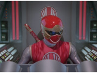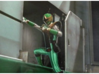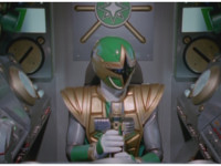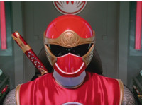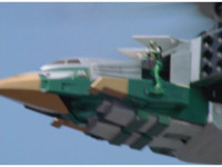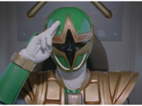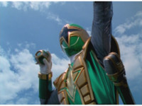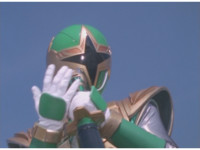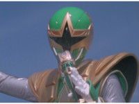 ![]() ![]() Green Samurai steps into frame, nod-talking and his forehead flashes. He motions his Samurai Cyclone Morpher about and poses with it. | |
