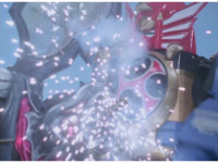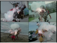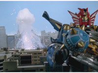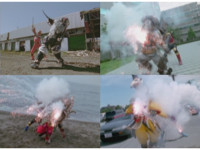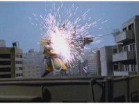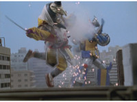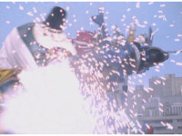 Cuts follow-ups of Megazord spark bursting. |