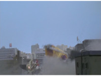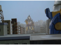 ![]() Zoom out as Starvark faces the Storm Megazord from across the city. |