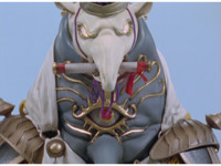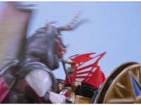 ![]() ![]() ![]() ![]() ![]() ![]() ![]() Magic Mustache charges along, twirling his mace. Storm Megazord aims the Lion Laser forth, Red gestures hands and talks in cockpit which is joined by his two teammates. The Lion Laser fires at Magic Mustache, blasting and crackling him, until he falls over and explodes massively. |