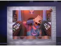 ![]() On the cockpit console, zoom in on the mini-portal as a new Power Disc appears, which Yellow picks up. |
