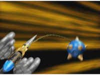 ![]() Navy leaps his Thunder Cycle up, firing a blast from it. |