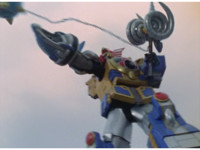 Power Sphere 05 pops out of Storm Megazord, and hatches into the Lion Laser. |