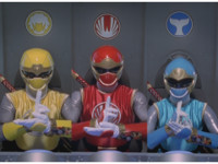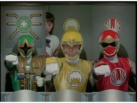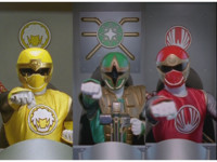 ![]() Three cockpit split shot of Yellow, Green Samurai, and Red gesturing fists forth. |