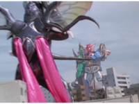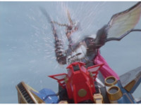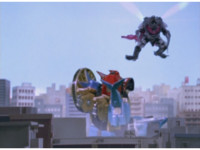 ![]() ![]() ![]() ![]() ![]() ![]() Storm Megazord looks up and Sucker flutters about, buzzing past it repeatedly as it swats him away. Finally, Sucker dives down and grabs the Megazord, then injects his sucker into it and drains some energy, until Megazord sparkily punches him off. |