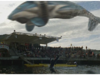 Altered to fit monitor; cuts before he talks more and beats on his chest drum; used ahead of source positioning. |