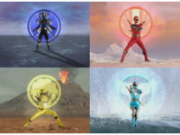 Navy Thunder & the Wind Rangers' morphing sequences. |