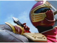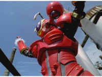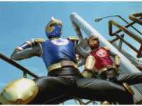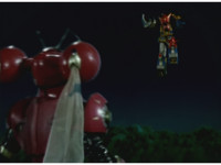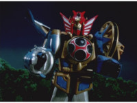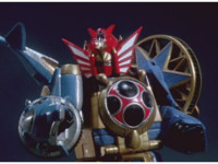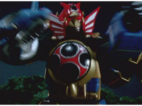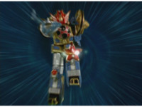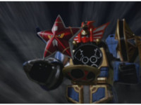 Power Sphere 14 pops out of Storm Megazord's chest and hatches into the Star Blazer. |