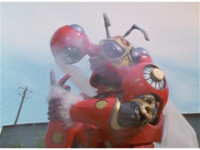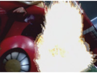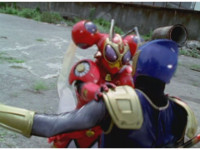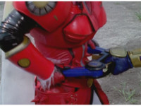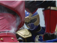 Cuts follow-ups of Beevil pushing a car into the Rangers, then blowing them up. |