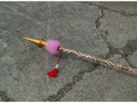 On an outside catwalk, Beevil excitedly scurries closer to the camera, then spreads arms in the air, before looking sharply to our left. The Thunders streak past her repeatedly, sparkily striking her until she's knocked off the balcony. Beevil lands safely on the ground, looks up while speaking, as the Thunders grip their Staff handles and pose talking. |
