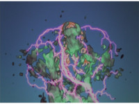 Cuts follow-ups of Beevil firing electricity sparkily at Megazord. |