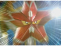 Navy dives in and jabs his Antler forth, snagging Beevil's waist sparkily, they struggle briefly, Beevil frets for a moment, then reaches down and prys the Antlers off of her, Navy gawks, as she gets free, then grabs him. |