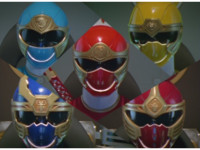 The three Wind Rangers' morphing sequences, Blue in the middle. |