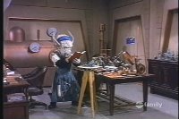 Rita stands there watching, Finster ignoring, as Monstermatic's output tube expels smoke and sparks. |