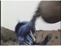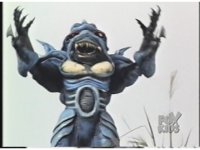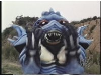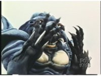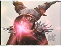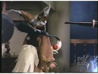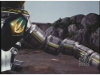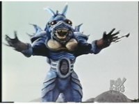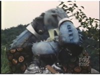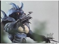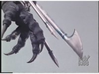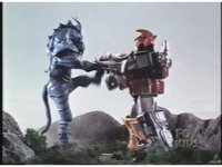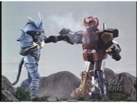 Fang sparkily stabs Megazord, then tries to do so again, it blocks, then deflects the monster, so Fang turns around and kicks, but misses. Fang then sparkily slashes Megazord back again. |