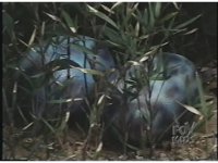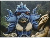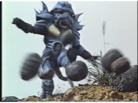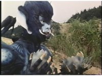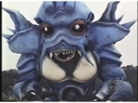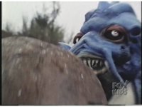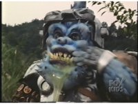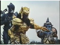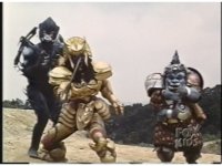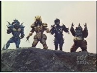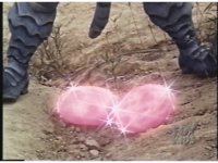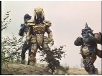 While Goldar watches from behind, Baboo & Squatt rush down into the bushes and pick up an egg apiece, Squatt raises his overhead and slams it down. |