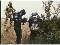 Goldar, Baboo, & Squatt head up on top of a hill and look around, Baboo spots something and points to our right as Squatt looks. |
