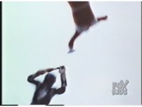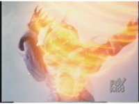 Prior shot of Fang firing eyebeams is cut due to exploding van subplot. |