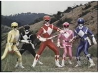 Slow zoom out from Red in Megazord cockpit, as he lowers fist, nod-talks, then leads team in spreading elbows out, then doing the Nazi salute. |