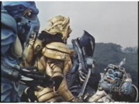 Camera tracks around balcony, Goldar watching, as Rita talks to Baboo about what she sees on Earth, Squatt glancing back and forth. Baboo replies at end. |