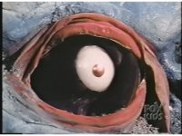 Extreme close up on Fang's mouth as he widens his jagged-tooth jaws slowly. |