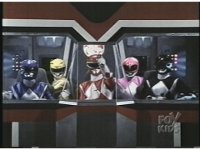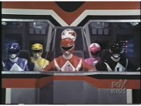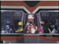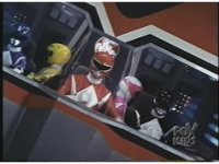 Close on Red in Megazord cockpit, as he makes a fist, then grips controls as shot zooms out and everybody mans their station as the cockpit returns to level position. |