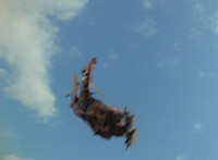 Green Samurai flips over the camera. |