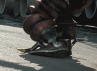 Cuts before he turns and cuts follow-ups of Blue and the Thunders attacking him. |