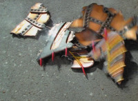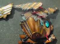 Goldwinger's ears and armor bits crumble to the ground, the regeneration indicator light crackling then exploding. Goldwinger writhes about, unable to repair his ear-wing. |