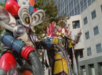 Inflatron looms over the camera, gigantically. |