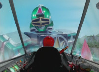 Hyper Zurganezord faces the Hurricane Ultrazord, Zurgane gripping controls nervously, then Red speaks. |
