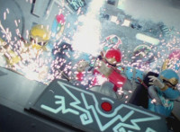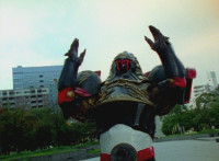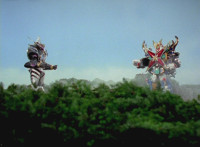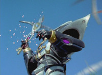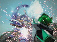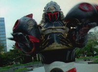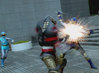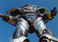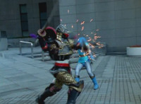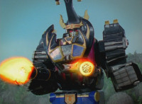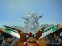 Hyper Zurganezord faces Hurricane Megazord for a moment, before the latter charges forth, the former taking things slow. Both punch each other at the same time sparkily, then kick each other at the same time sparkily. Hurricane Megazord pulls out its sword, then sparkily slashes Hyper Zurganezord three times, which doesn't harm it one bit, aside from sparks. Zurgane taunts the team, then fires a fist missile forth, Hurricane Megazord barely leaps out of the way before it impacts explosively. |