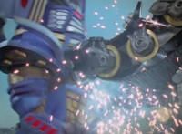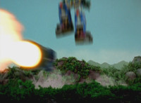 Shot 5 is trimmed pretty heavily; shot 6 is also shortened considerably so we don't get the slicing effect over the Megazord; final shot is also shortened. |